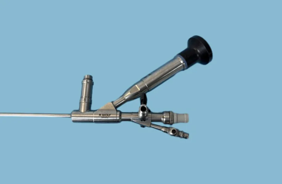 Richard Wolf 8702.534 is a semi-rigid fiber ureterorenoscope with offset eyepiece, imported from Germany. Featuring slim distal diameter, dual instrument channels and wear-resistant sapphire lens, it supports lithotripsy, stone extraction and urological diagnosis.